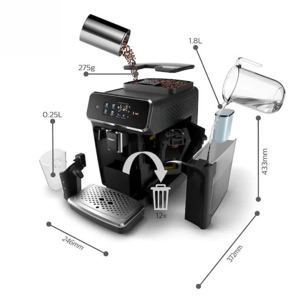 اسپرسو ساز فیلیپس مدل EP2231-40 یک دستگاه اتوماتیک برای دوستداران قهوه است که امکان تهیه اسپرسو و انواع نوشیدنی‌های قهوه را با کیفیت حرفه‌ای در خانه فراهم می‌کند. این دستگاه با طراحی مدرن و جمع‌وجور، ظاهر زیبایی به آشپزخانه شما می‌بخشد و استفاده آسان آن، تجربه‌ای حرفه‌ای از قهوه را ارائه می‌دهد.