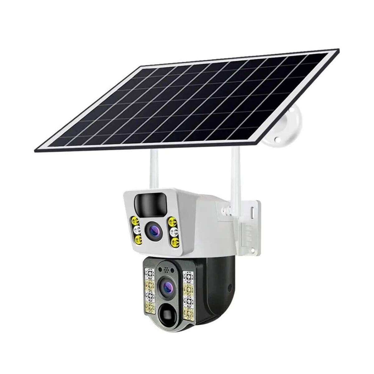 این دوربین مناسب نصب در باغ، ویلا، فروشگاه و محیطهای باز است. دو لنز مجزا و قابلیت چرخش کامل، پوشش گستردهای از محیط ارائه میدهد. انرژی خورشیدی و باتری داخلی، امکان نصب در مکانهای دورافتاده و بدون برق شهری را فراهم میکند و دید در شب IR، نظارت شبانه را تضمین میکند.