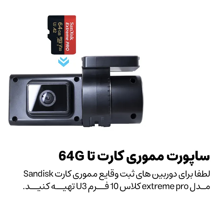 • دو لنز برای ثبت جلو خودرو و داخل کابین، با کیفیت Full HD 1080p.