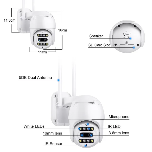منبع نور دوگانه هوشمند ساخته شده در 4 عدد LED سفید و 6 عدد IR LED ، نظارت بر اشیا moving در حال حرکت ، به طور خودکار روشن می شود. این یک سلاح کوچک چشمگیر در برابر حوادث و جرم است.